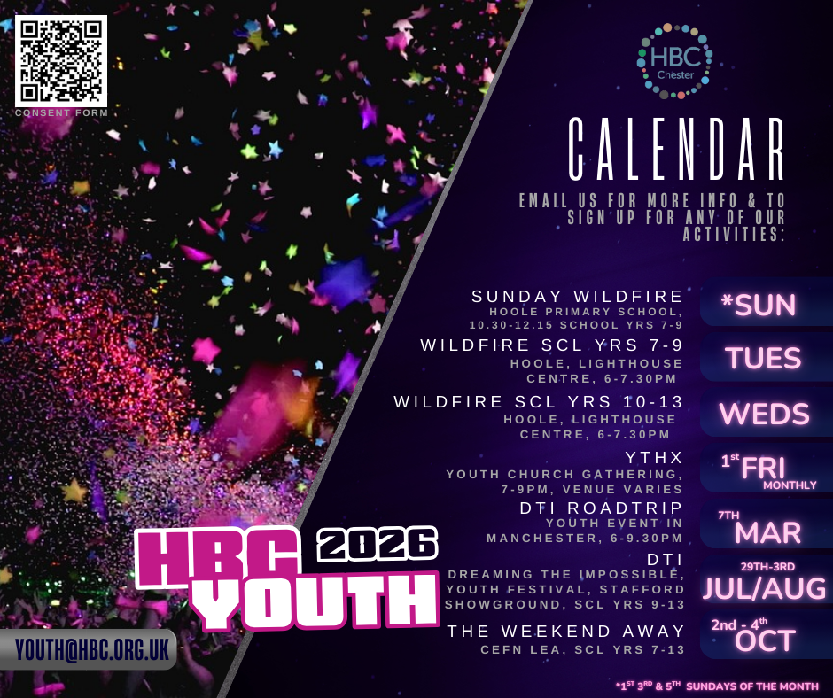 When: We meet on Tuesdays 6-7.30pm at Hoole Lighthouse Centre (and also as ‘Sunday Wildfire’ during our church gatherings on the 1st, 3rd and 5th Sundays each month).